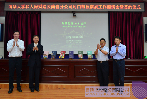 簽約儀式后,由云南啟迪協(xié)同啟迪科服成立的無量山啟迪大健康科技有限公司“土林鳳凰”新產(chǎn)品正式發(fā)布,姜勝耀、吉向陽、龍大偉、人保財險云南省分公司總經(jīng)理雙磊(清華校友)共同為新產(chǎn)品揭幕。作為啟迪精準助力南澗發(fā)展“六個一”之茶產(chǎn)業(yè)發(fā)展舉措,此次新品以“無量茗香 水木情深”為主題,由清華大學美院師生進行設(shè)計。